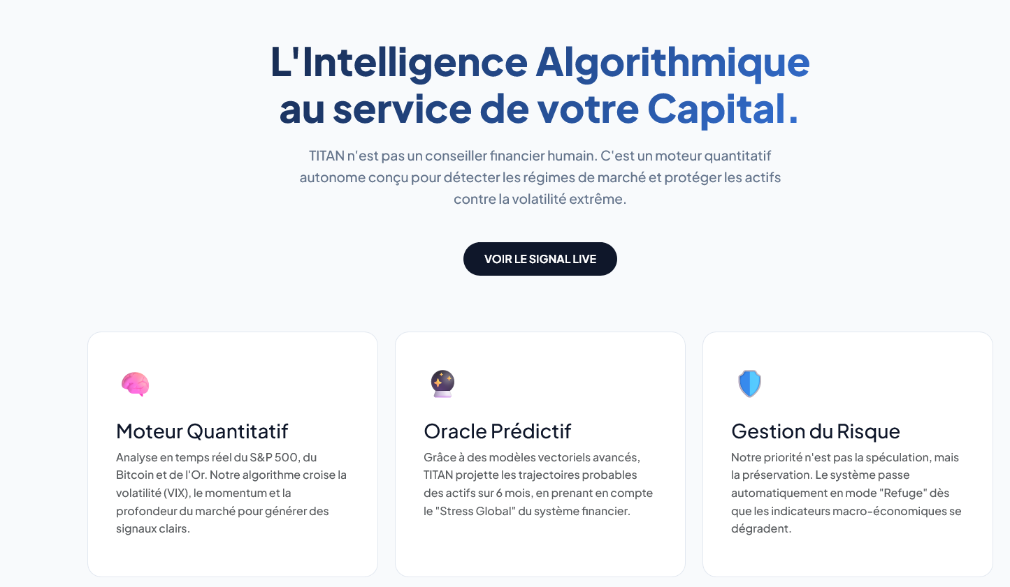 TITAN n'est pas un simple agrégateur de prix. C'est un moteur d'intelligence financière conçu pour filtrer le "bruit" du marché et exposer les véritables dynamiques sous-jacentes (Liquidité, Stress, Historique Fractal).