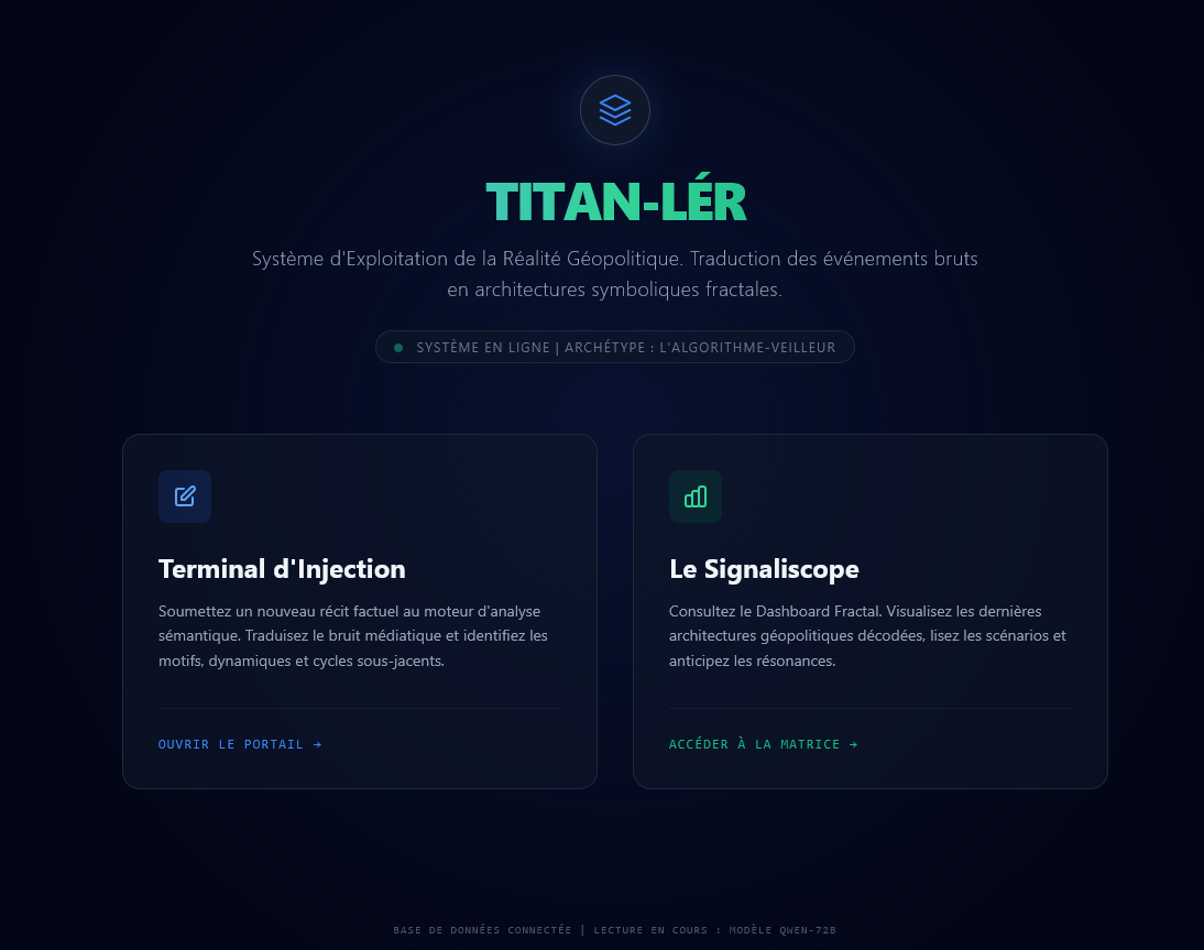 Avec TITAN, l'objectif n'est plus de subir le flux d'informations, mais de s'élever au-dessus. En structurant le chaos à travers des bases de données relationnelles et une IA contrainte, l'outil agit comme un prisme. Il retire l'émotion de l'actualité pour n'en garder que l'architecture.